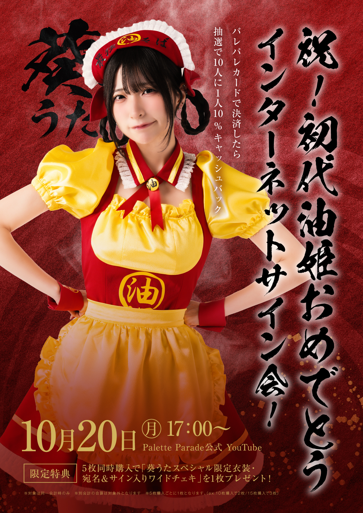 葵うたが油そば春日亭PR大使油姫オーディションに優勝した記念インターネットサイン会の実施が決定!