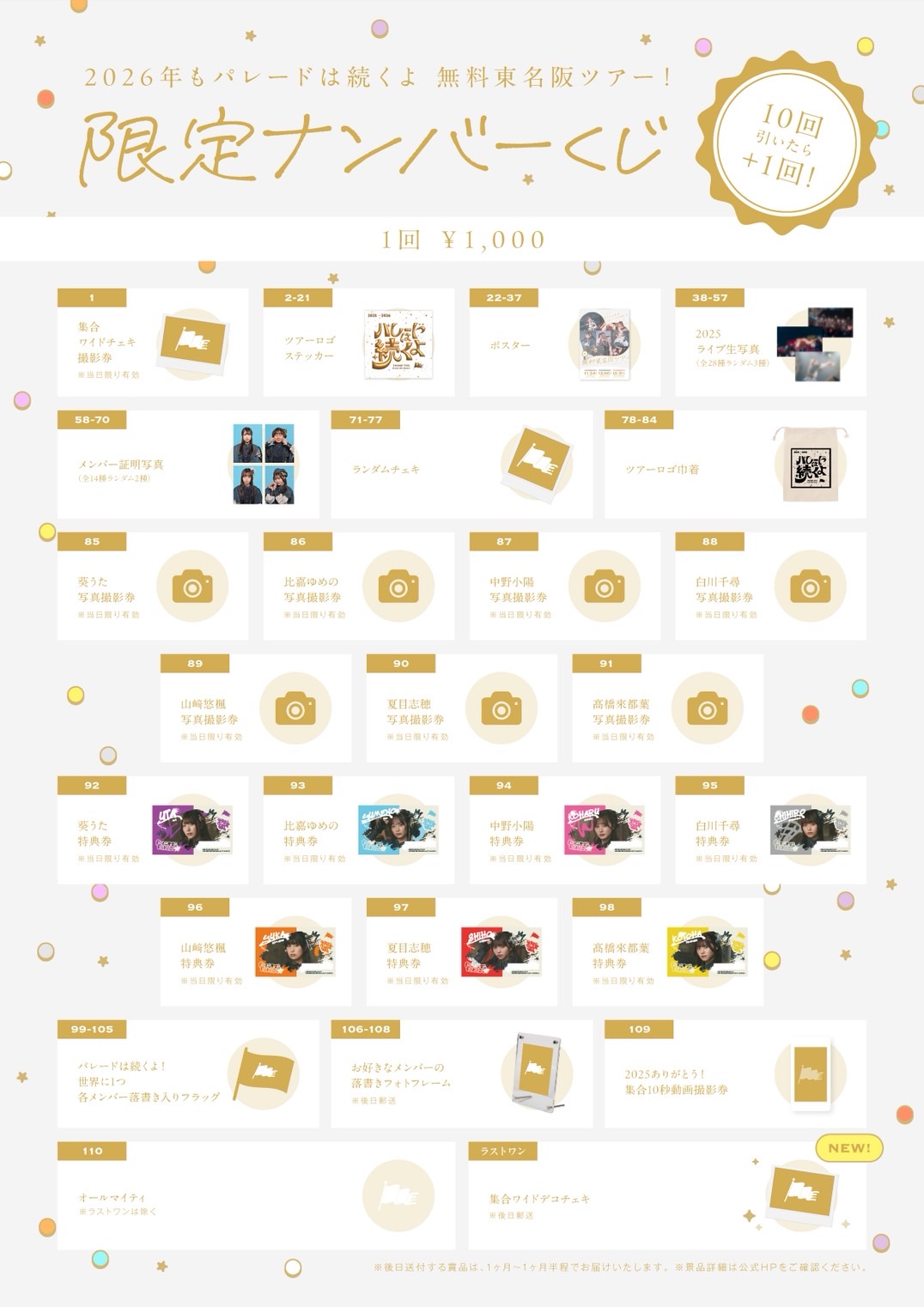 『2026年もパレードは続くよ 無料東名阪ツアー!』限定ナンバーくじ
