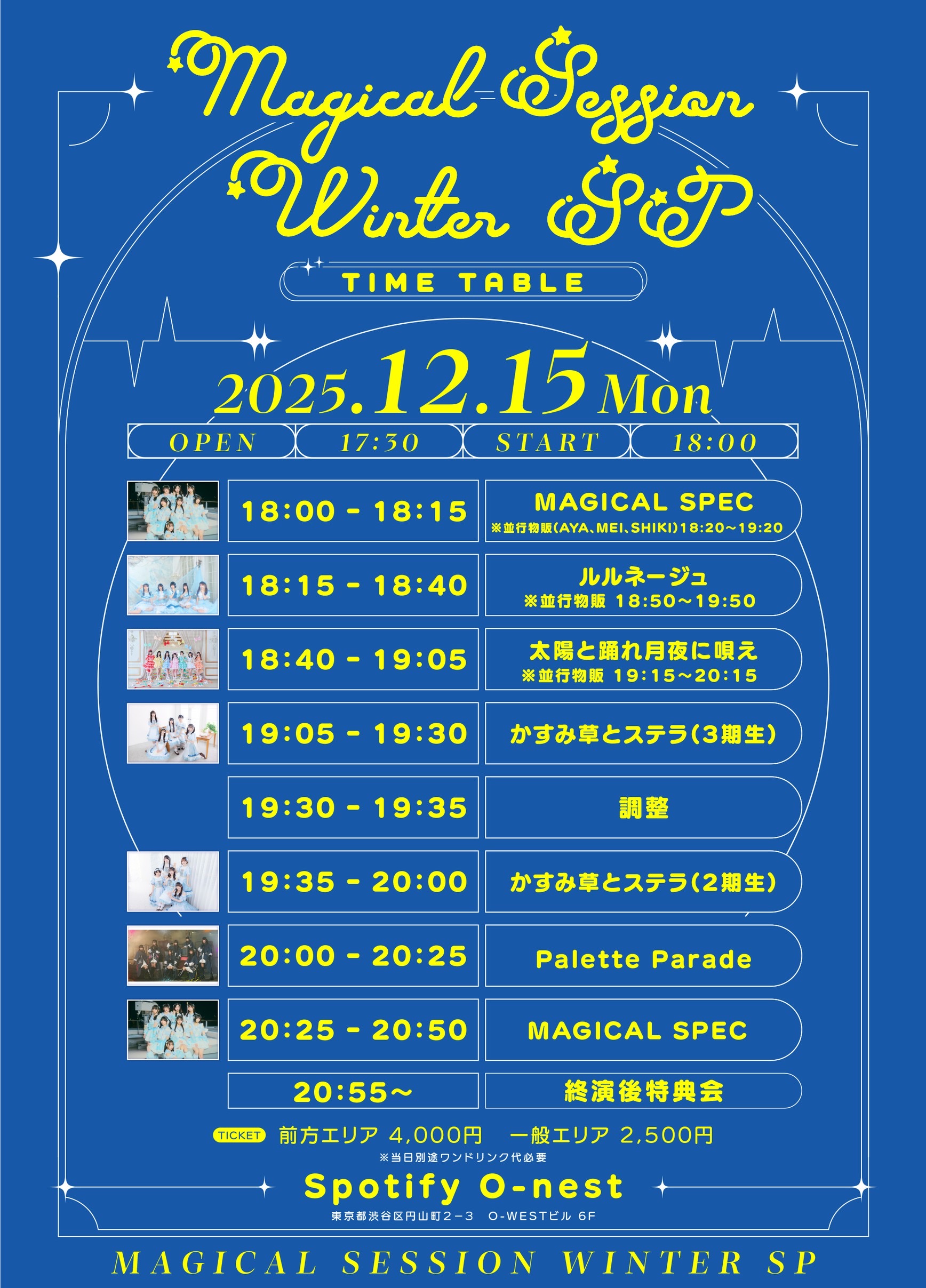 MAGICAL SPEC / かすみ草とステラ(2期生) / かすみ草とステラ(3期生) / 太陽と踊れ月夜に唄え / Palette Parade / ルルネージュ