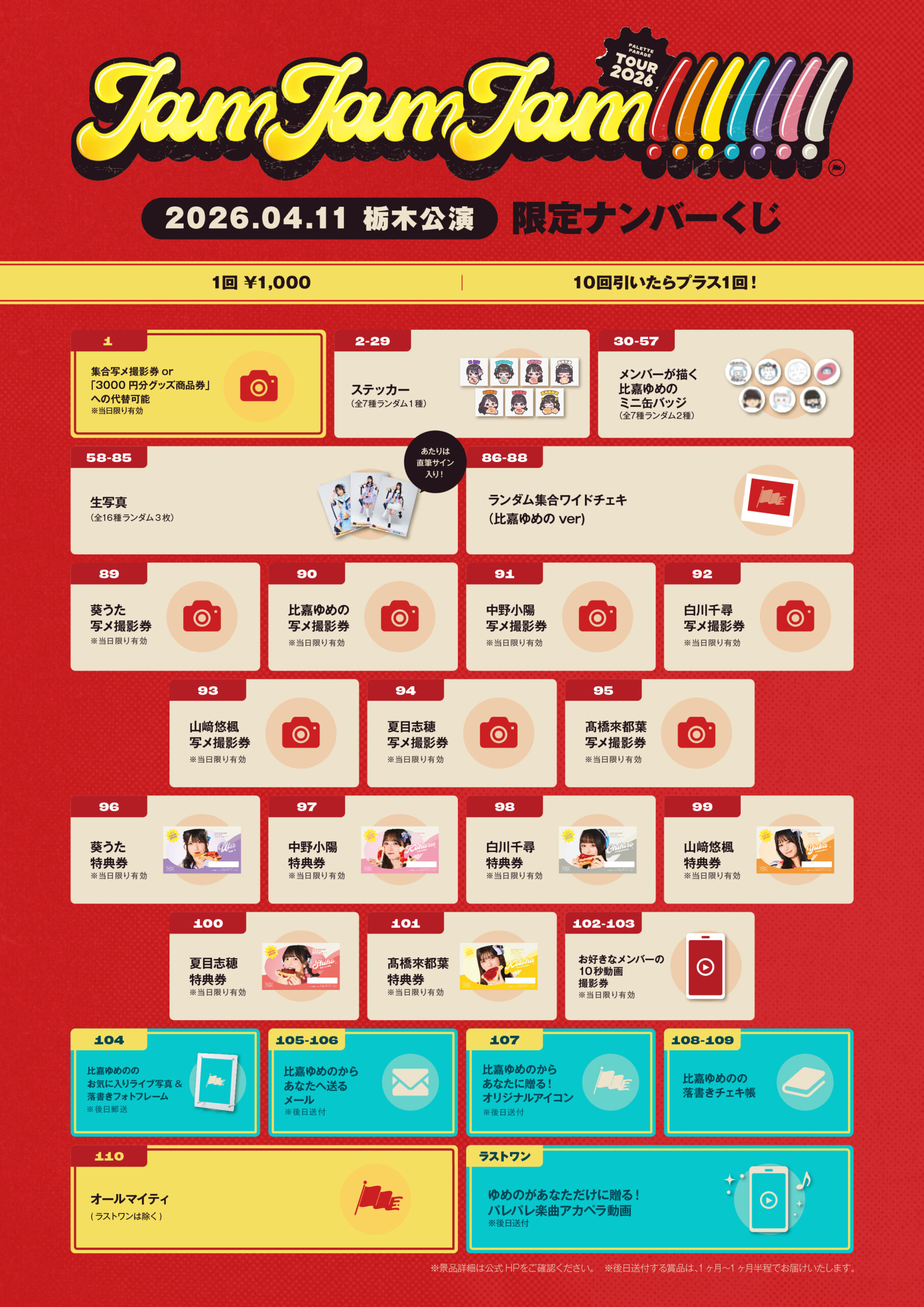 Palette Parade 全国ツアー2026 『JAM JAM JAM!!!!!!!』-栃木公演- 限定ナンバーくじ
