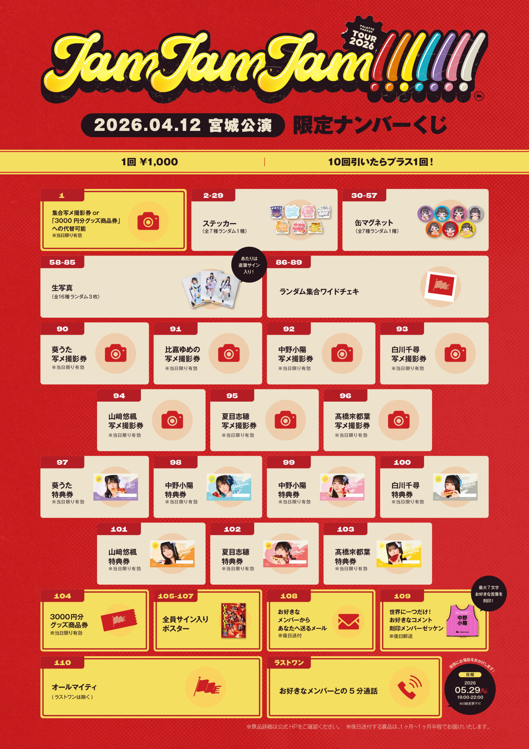 Palette Parade 全国ツアー2026 『JAM JAM JAM!!!!!!!』-宮城公演- 限定ナンバーくじ