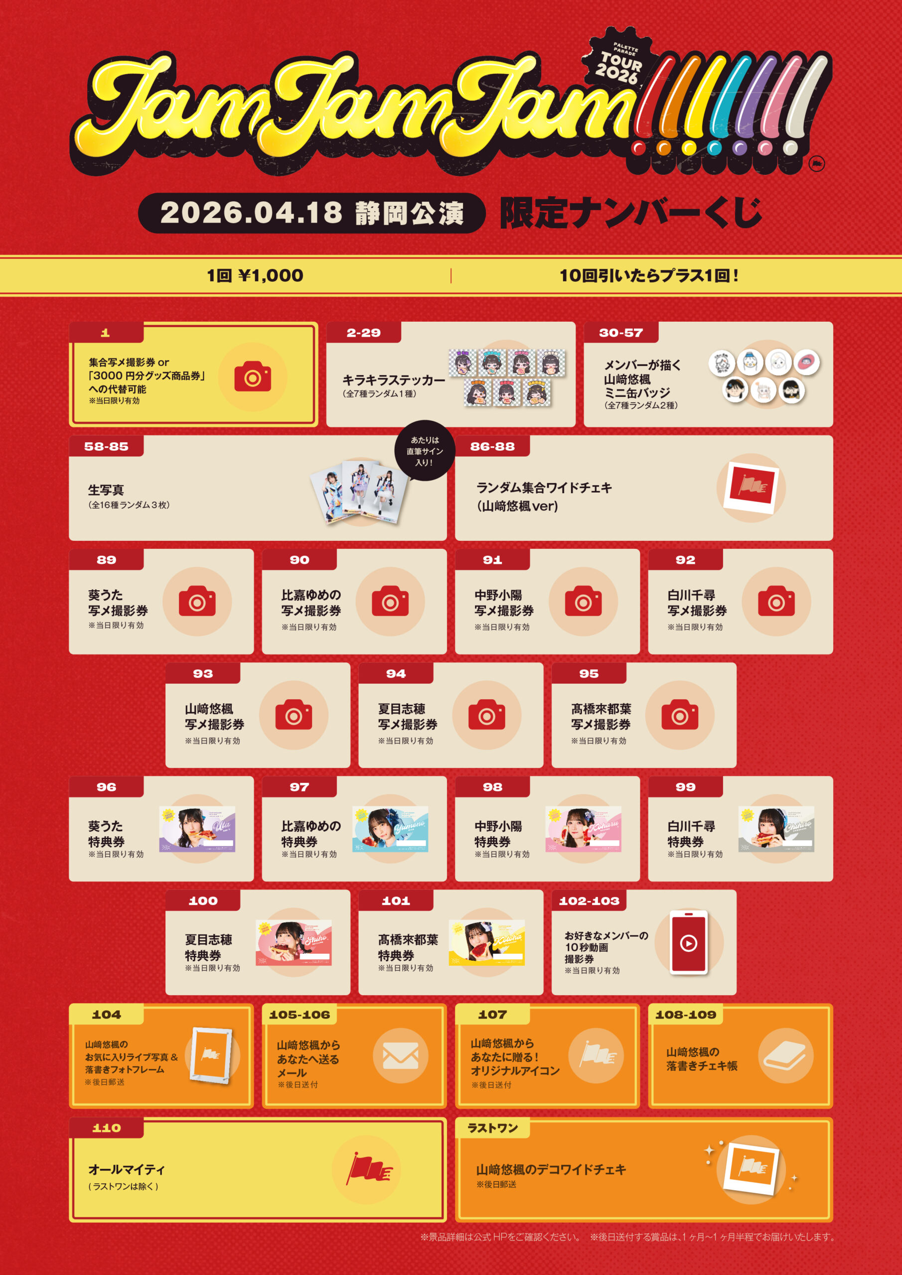 Palette Parade 全国ツアー2026 『JAM JAM JAM!!!!!!!』-静岡公演- 限定ナンバーくじ